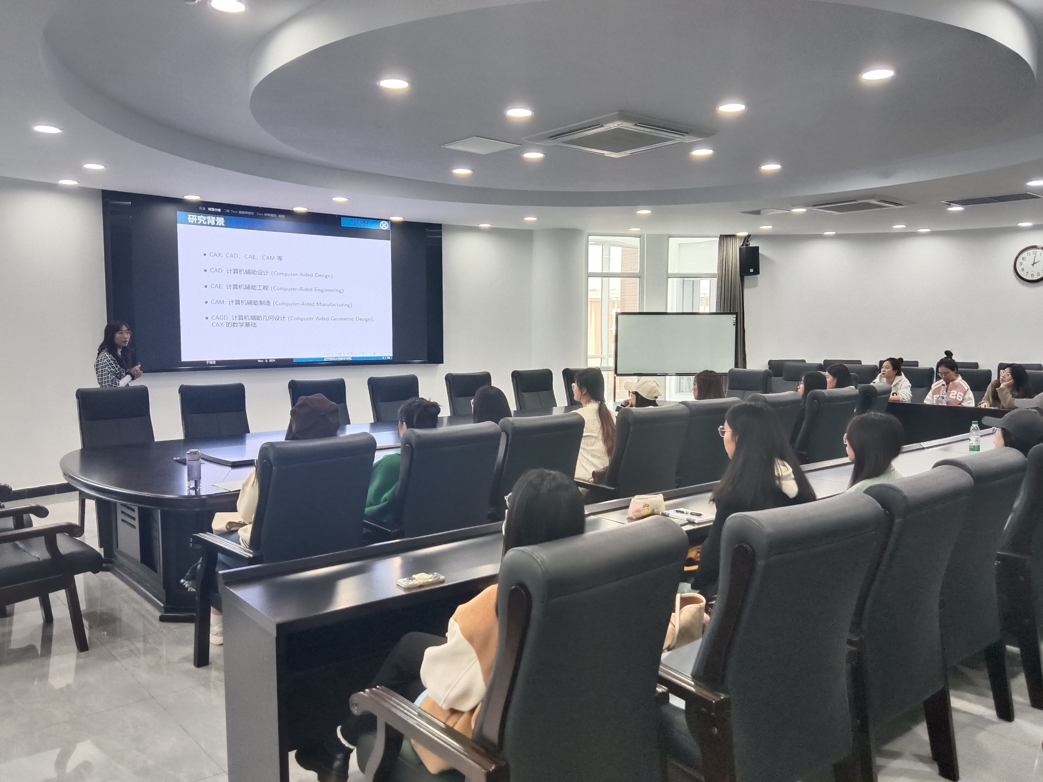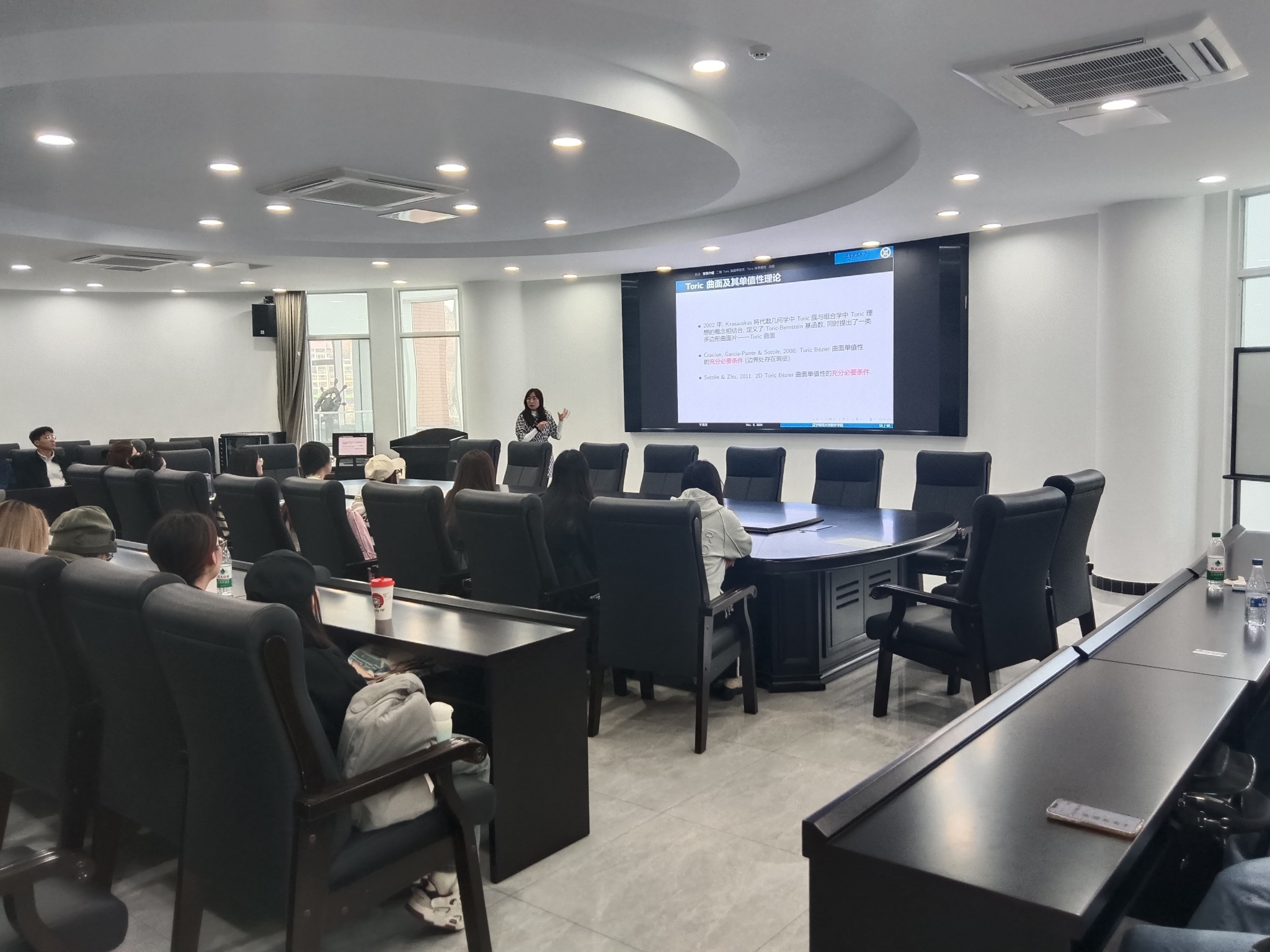2024年11月8日,在数学学院会议室举办了一场别开生面的数学讲座,由我院于滢滢老师主讲,主题为“Toric参数化的单值性理论”。本次讲座吸引了众多计算数学的学生,共同来讨论学习这一前沿数学问题。本次讲座由数学学院郭振宇老师主持。